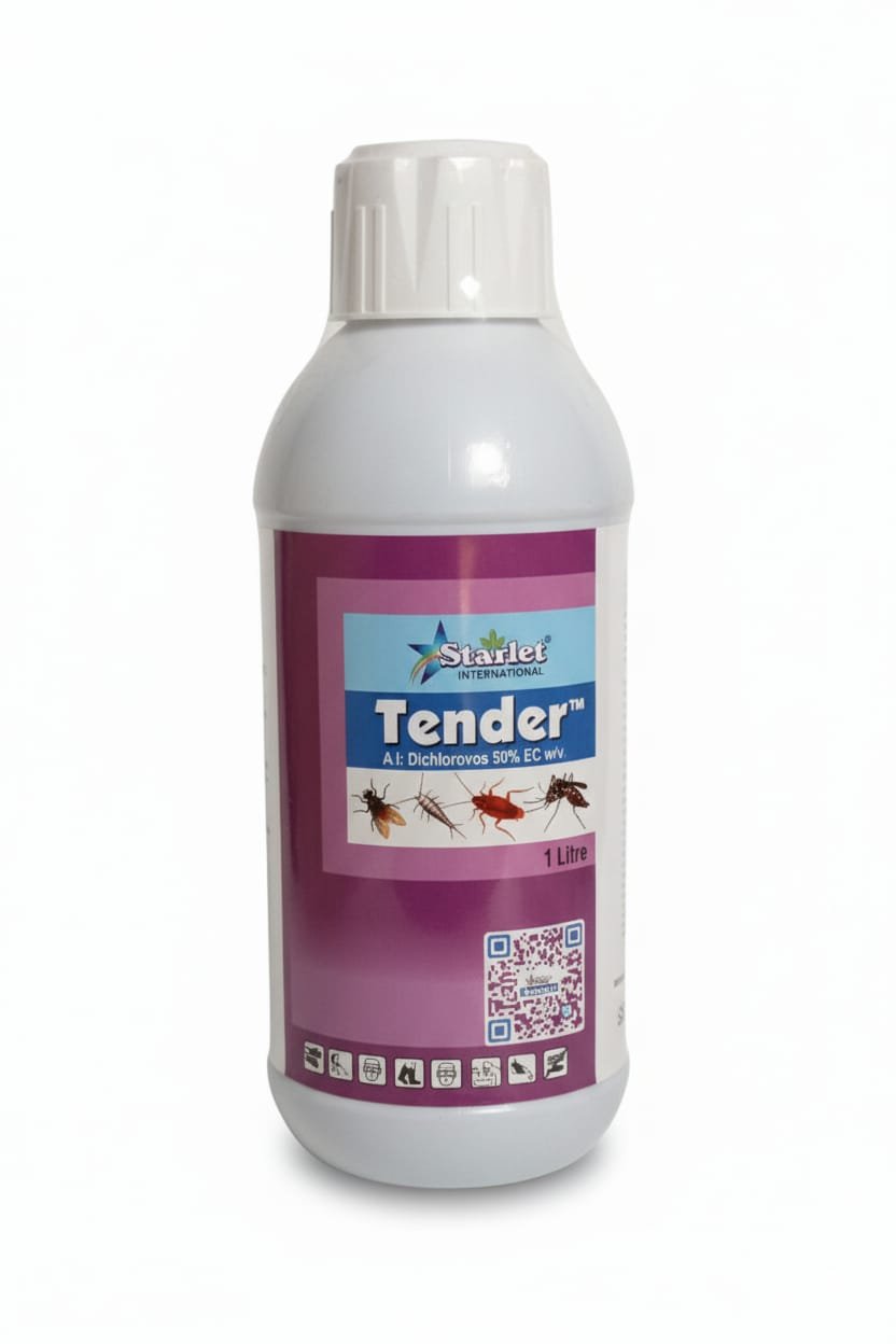 Powerful Insecticide: Tender DDVP 50EC is a fast-acting organophosphate insecticide designed to control a wide range of pests including mosquitoes, flies, cockroaches, and bedbugs.